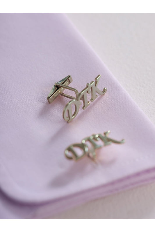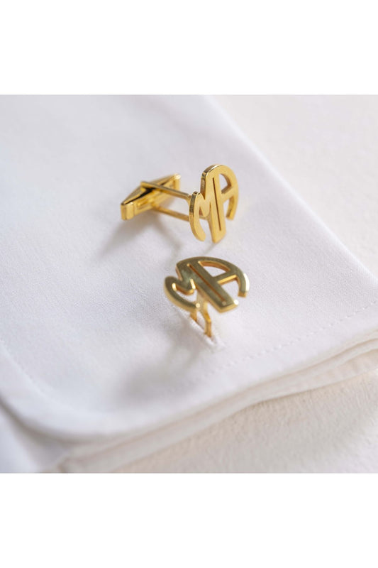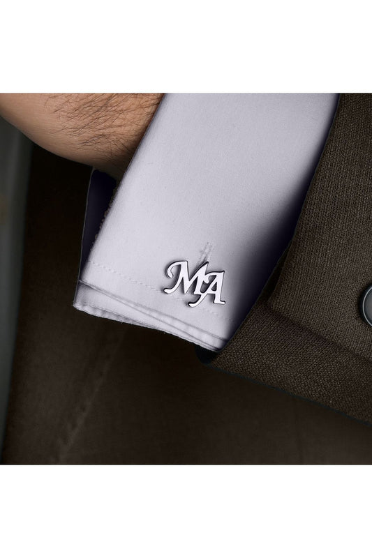 925 Ayar Gümüş 3 Harfli Kol Düğmesi Altın Kaplama Damat Hediyesi Kişiye Özel